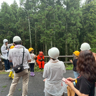 雨で杉の木皮が滑りやすい中、安全に配慮しながら行われた特殊伐採と伐採作業の見学では、大木が倒れる瞬間の迫力に「おぉ〜!」と歓声が上がりました‼